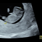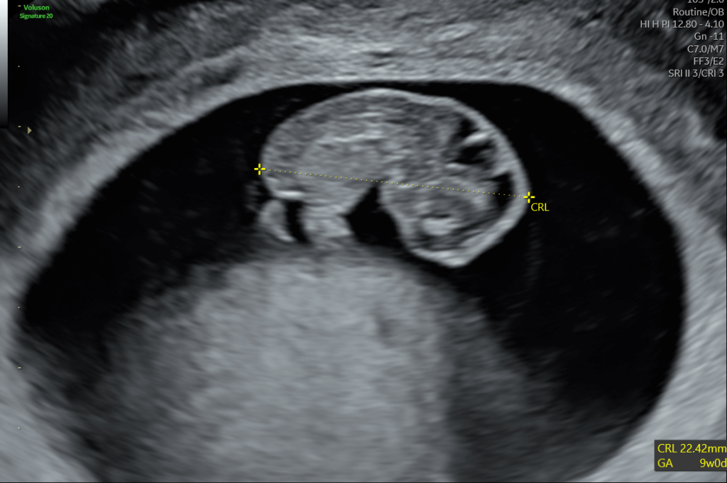 A gestation sac with a yolk sac – no evidence of a baby yet, we can confirm that the pregnancy is in the right place.